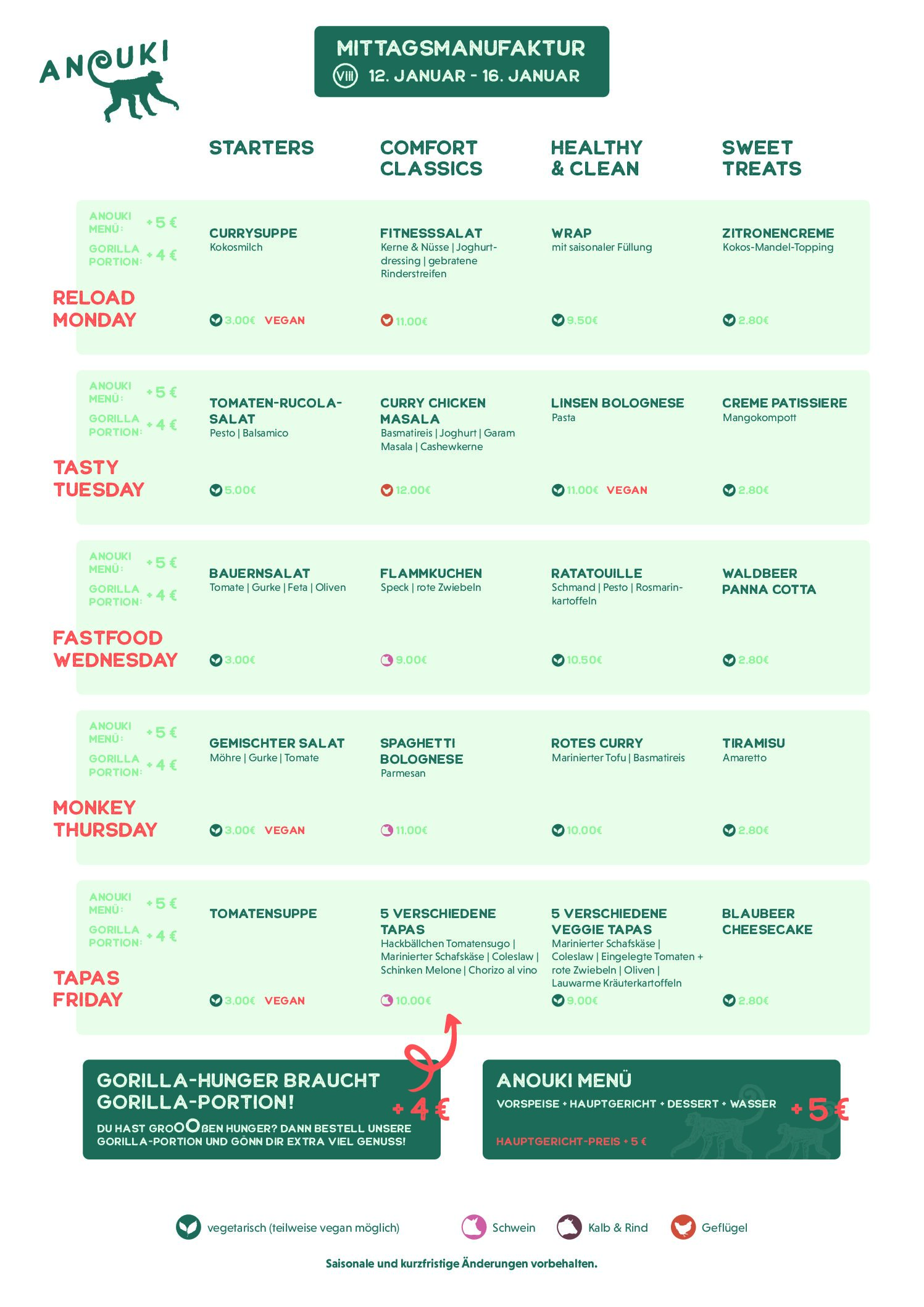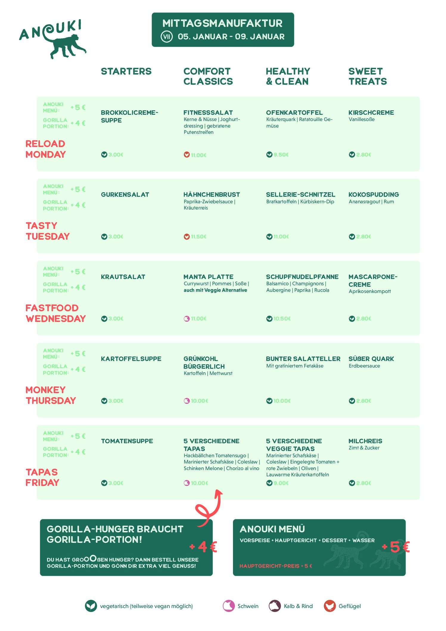 In der Anouki Kantine landet nur das Beste auf dem Teller: frische, leckere Zutaten und kreative Gerichte, die deine Geschmacksknospen zum Applaus bringen. Frisch, lecker, kein Fertigkram, kein Convenience und so gut, dass dein Magen freiwillig Standing Ovations gibt – denn hier wird richtig gekocht.